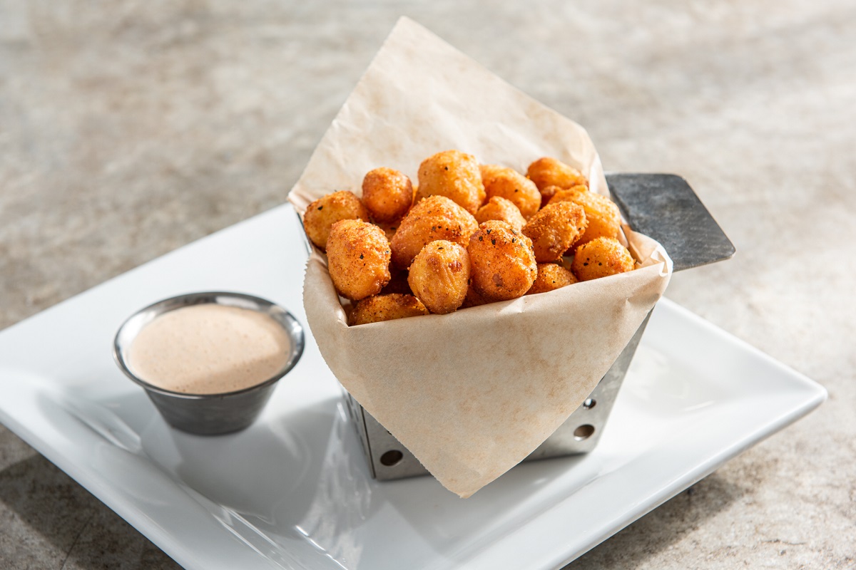 White and yellow Wisconsin cheese curds topped with chile spices. Served with ancho-chile ranch.